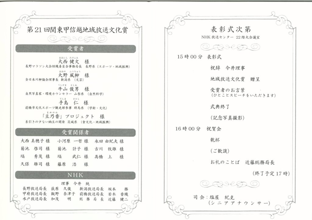 第21回NHK関東甲信越「地域放送文化賞」授賞!!