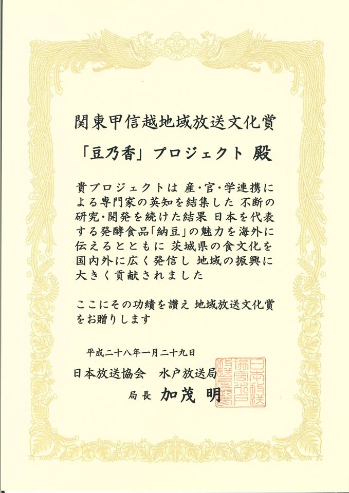 今回は「豆乃香」プロジェクトとして受賞しました。