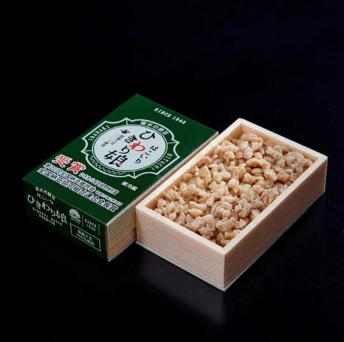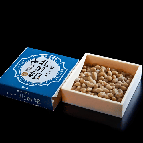 通常の 8 倍の時間をかけ、大豆の甘みと旨みを引き出しながら匂いを抑える、昔ながらの伝統製法です。ふっくらもちもちの食感と木桶の風味で、大豆がしっかり味わえる一品。また、納豆が苦手な人にも食べやすく、伝統をつなぐ納豆屋の未来を託した新しい納豆です。