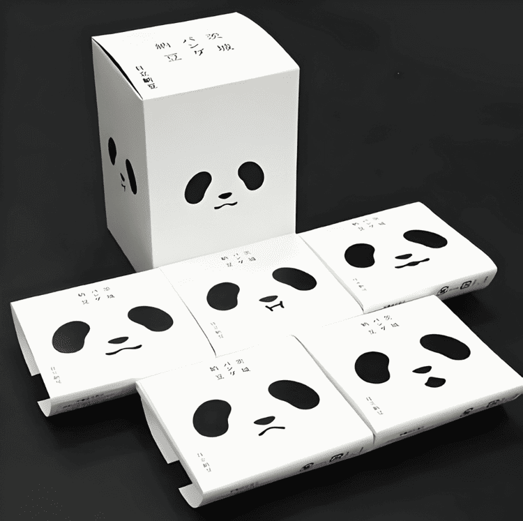 箱をあけると、しかくパンダとわらつとパンダとご対面、思わずにっこり。