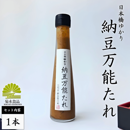 日本橋の料亭「ゆかり」三代目野永喜三夫氏と共同開発した万能納豆タレ3種類の良さを1本にまとめて「納豆万能たれ」としてリニューアルして新発売です。