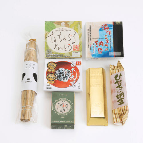 菊水ゴールド納豆/海洋ミネラル納豆/なちゅらるなっとう/黒豊/菊水の大黒/ひたちの納豆スズマル/茨城パンダ納豆わらつと/はこいり ひきわり娘(スリム)