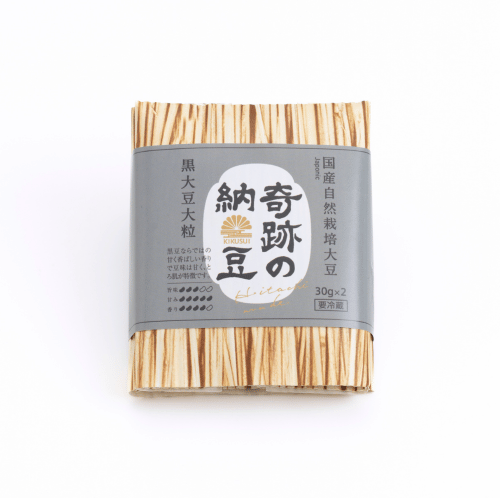 国産自然栽培の「黒大豆」と、昭和23年から培われてきた菊水食品の納豆づくりの技術を用いて、世界に誇れる【奇跡の納豆】をつくりあげました。黒豆ならではの甘く香ばしい香りで豆味は甘く、とろ肌が特徴です。